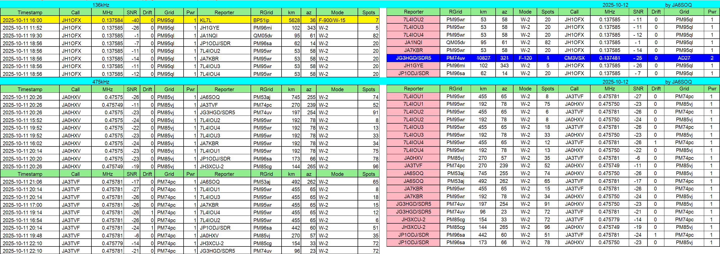 2025年10月12日JST//WSPR集計です。