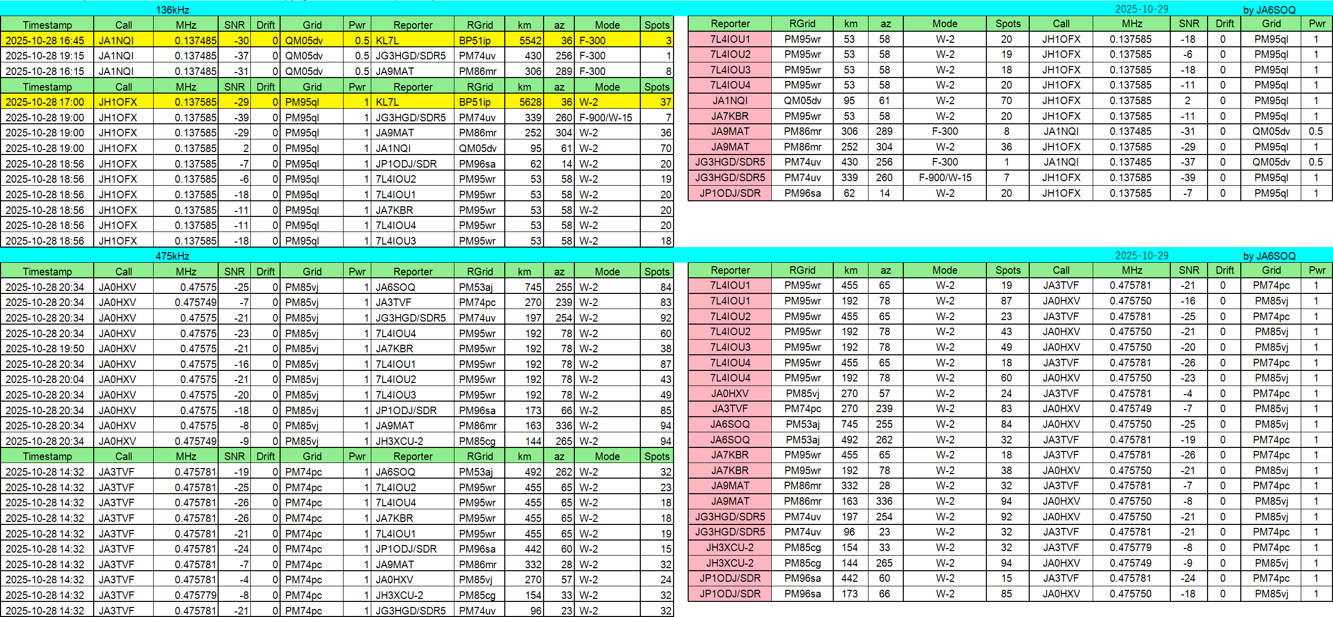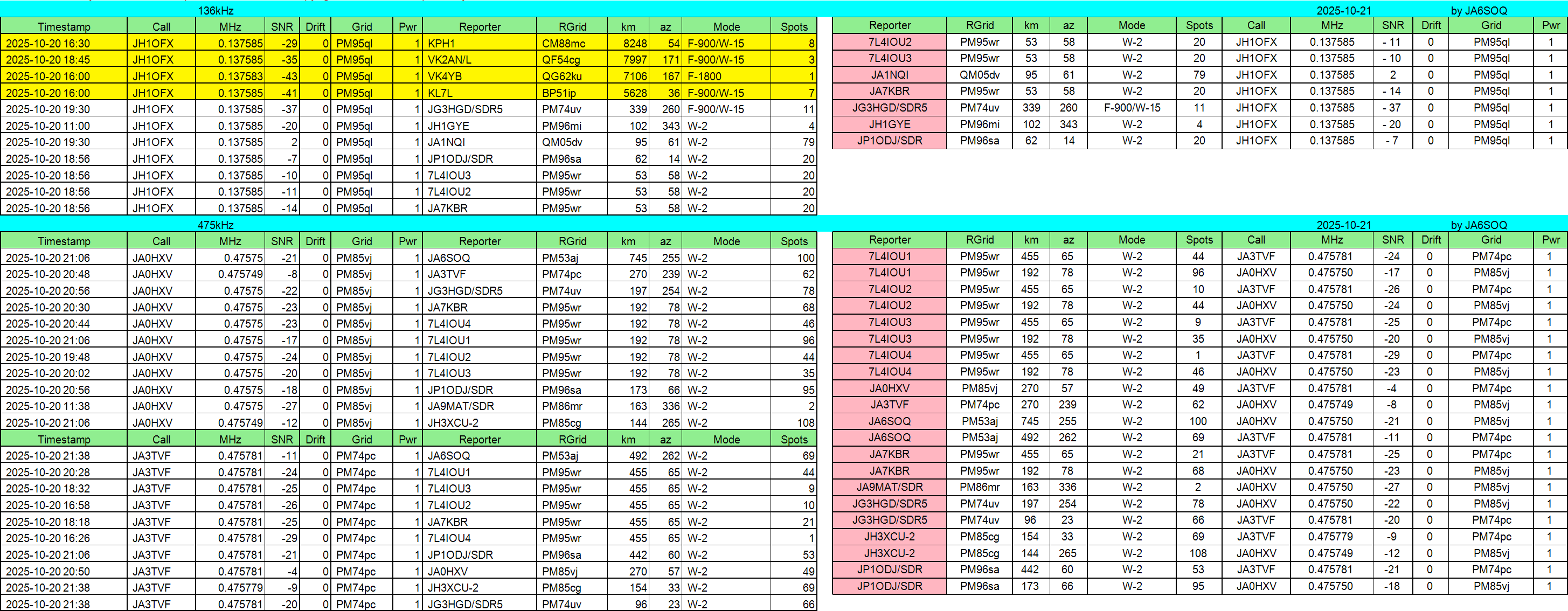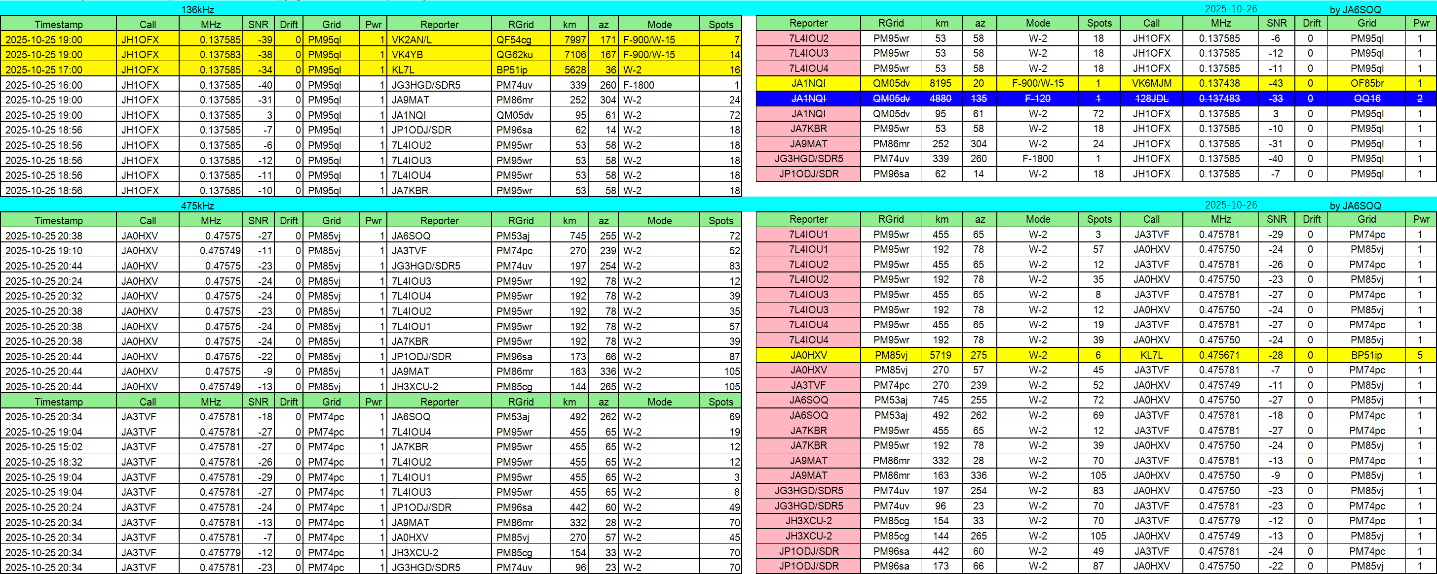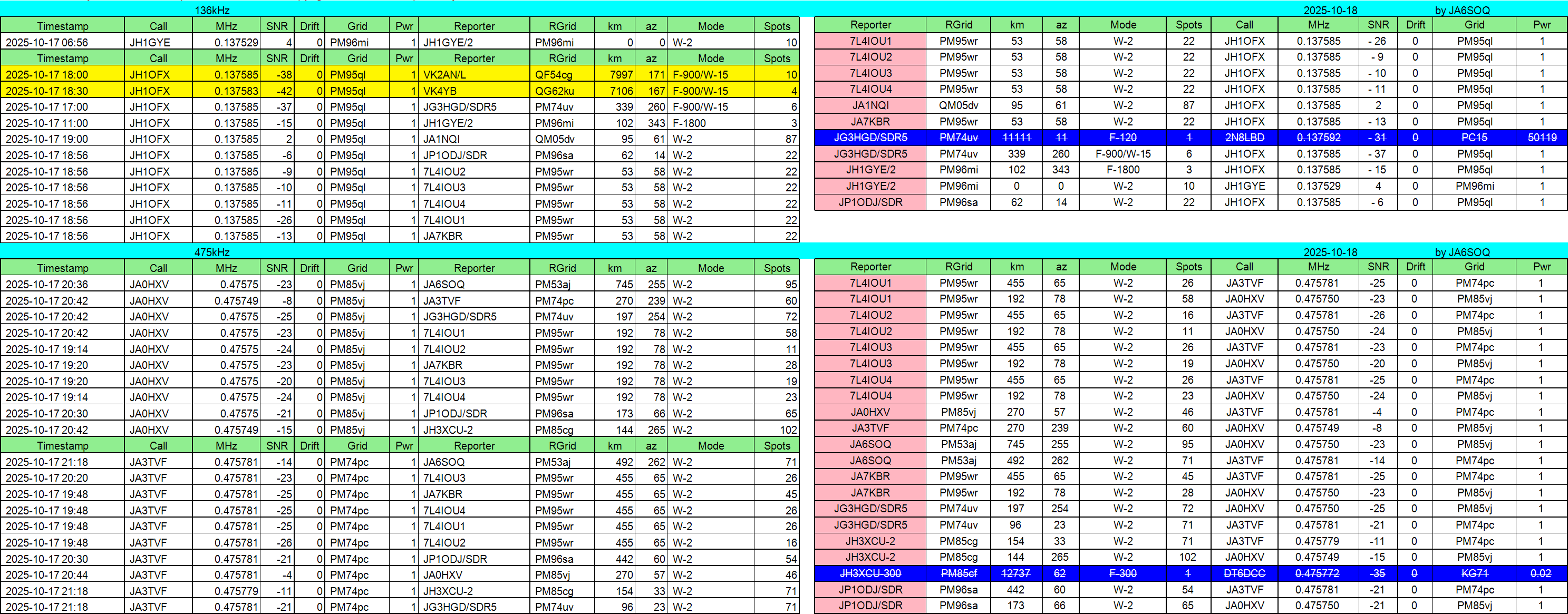 2025年10月16日JST//WSPR集計です。
