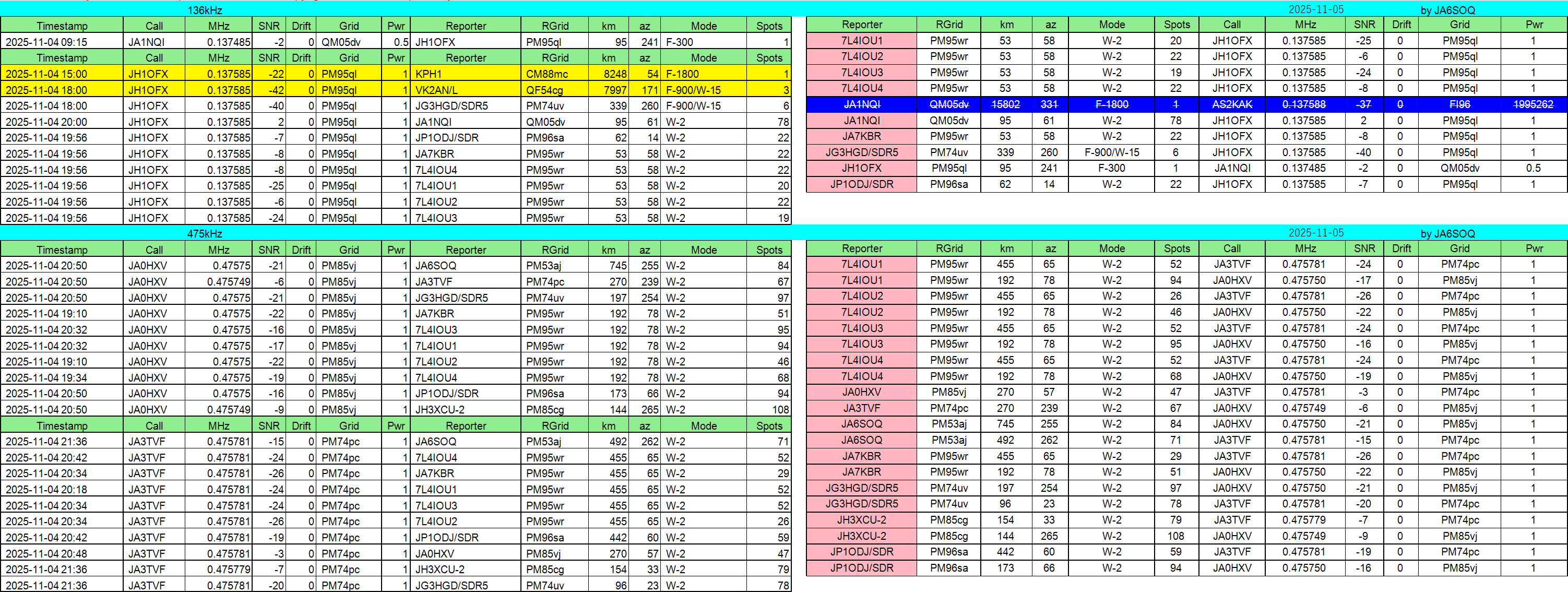 475kHz送信2局、受信8局でした。(総処理数4145局)