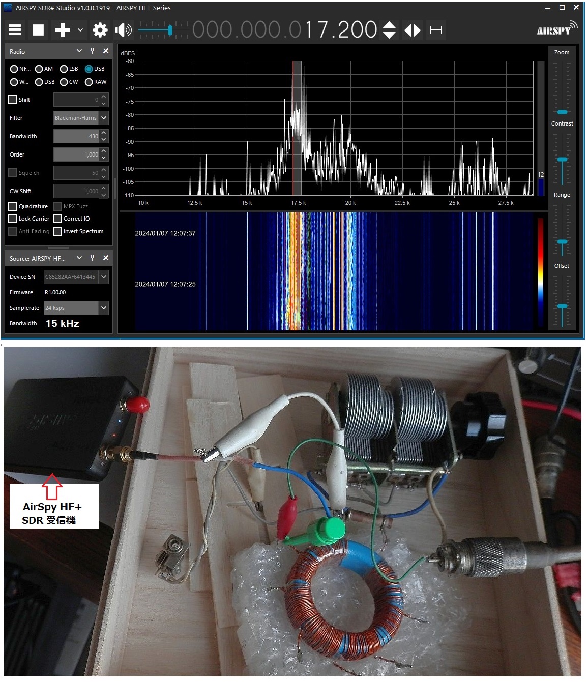 受信はアンテナ→BPF+アンプ→SDR→PCです。