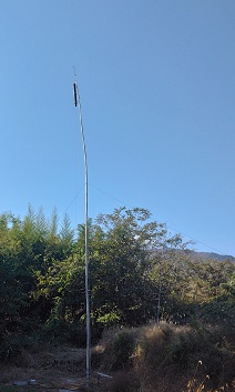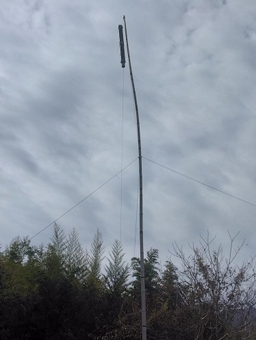 田んぼの真ん中にミニホイップを竹(約12m)先端に付けて建てました