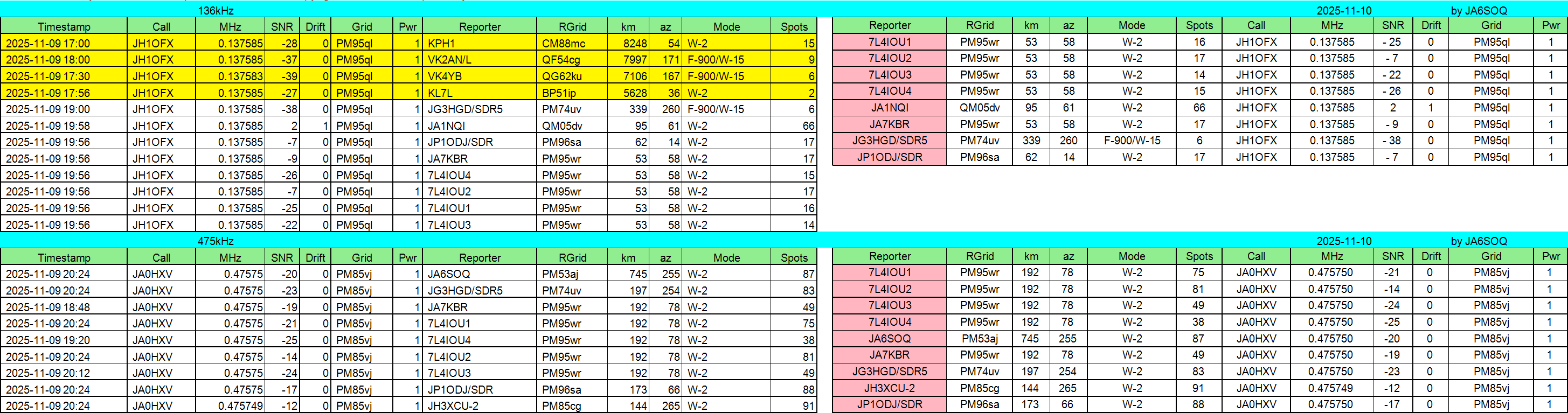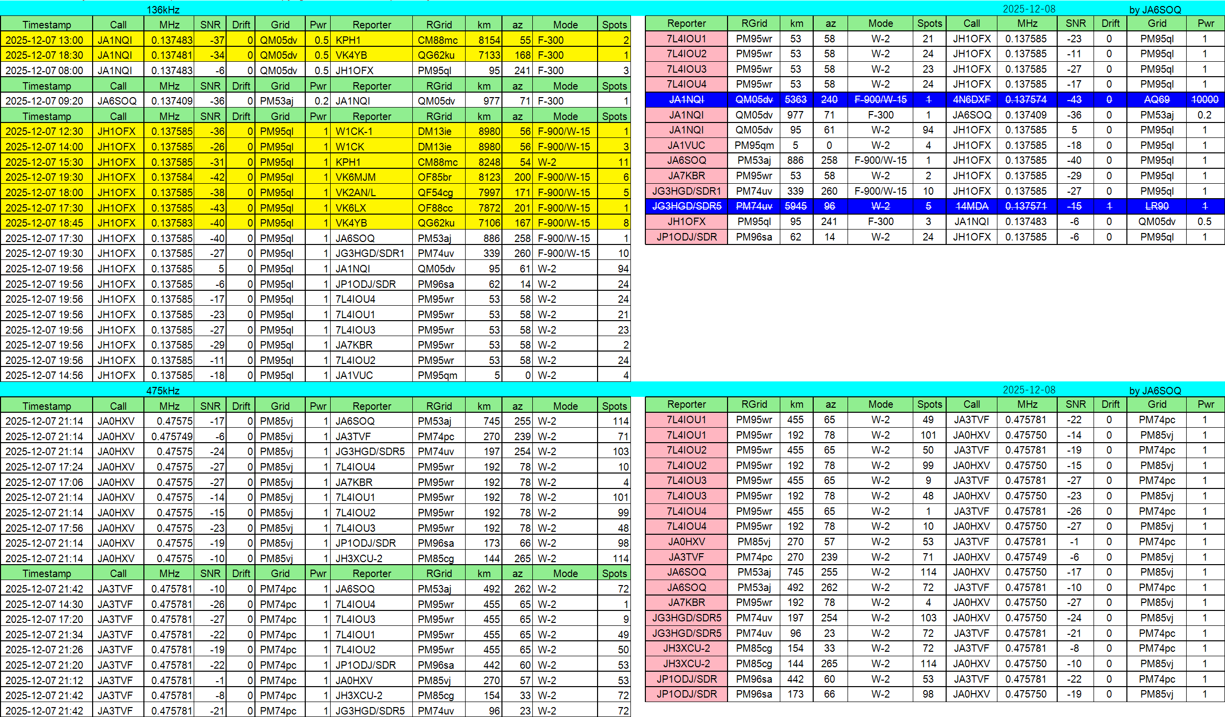 475kHz送信2局、受信8局でした。(総処理数3211局)