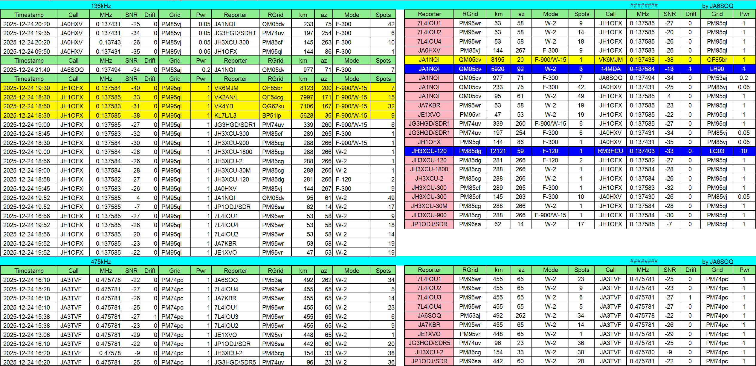 2026年01月24日JST//WSPR他集計です。