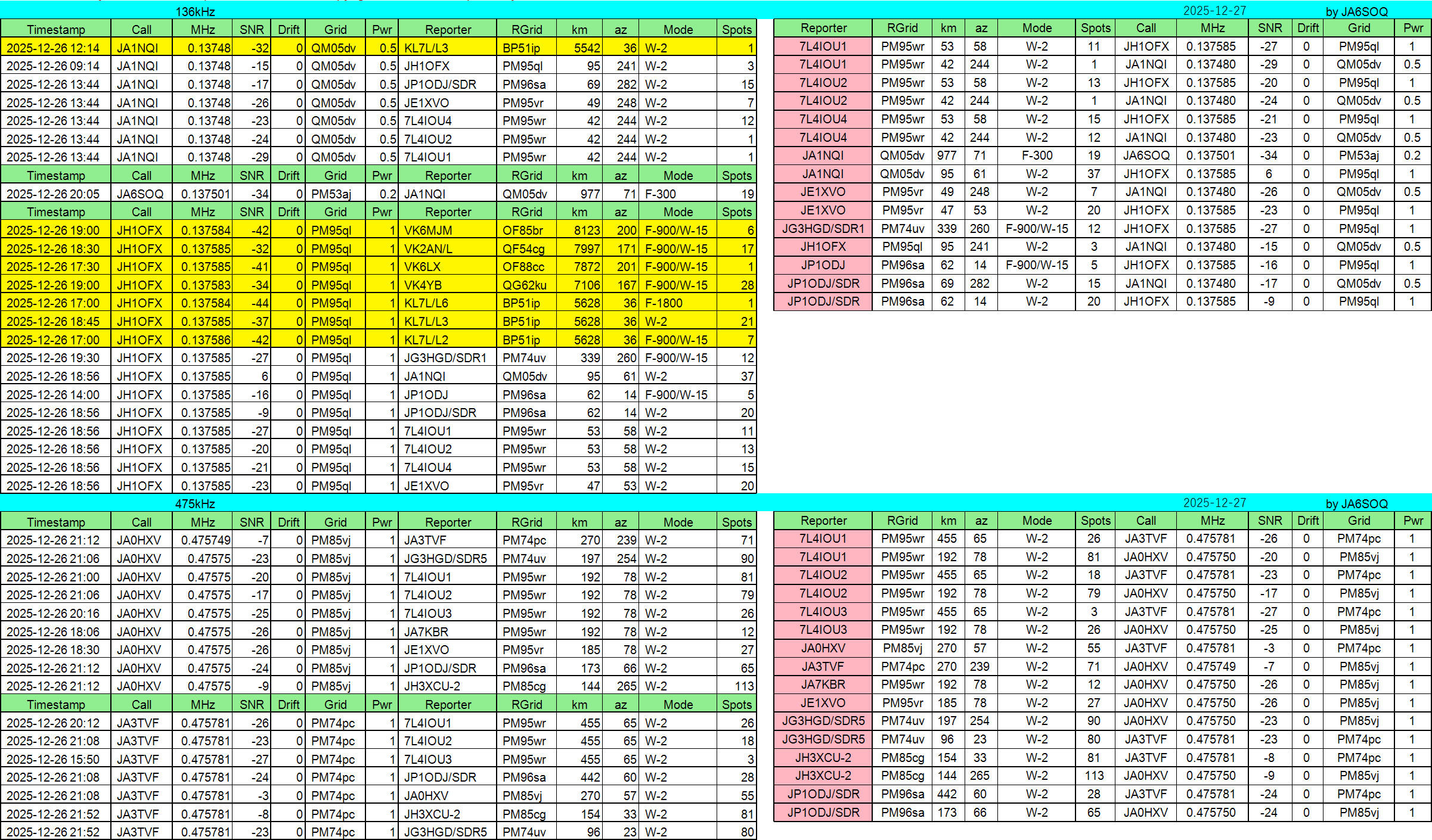 2026年01月27日JST//WSPR他集計です。