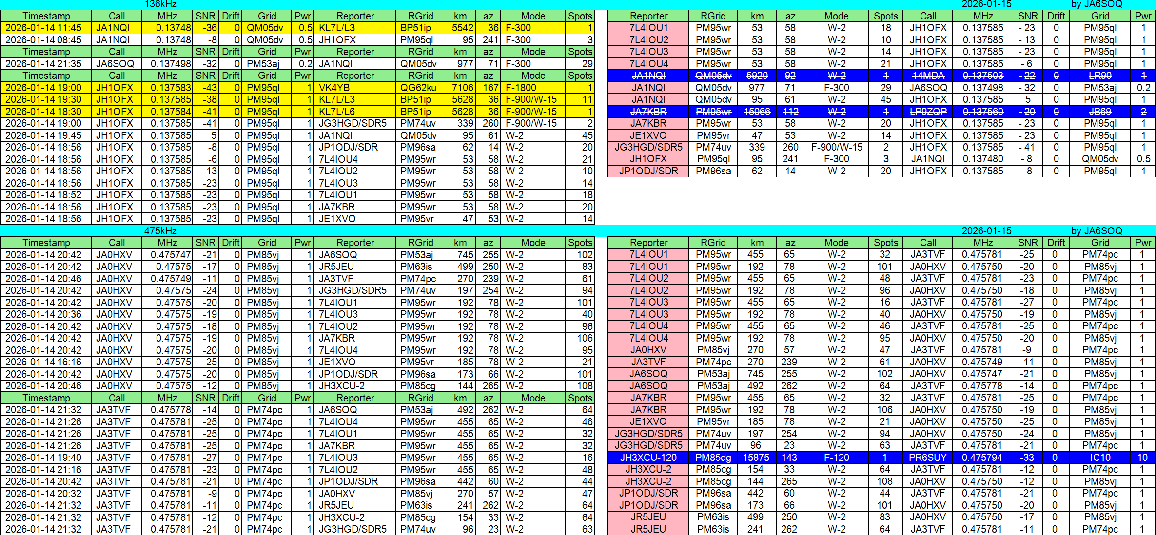 2026年01月26日JST//WSPR他集計です。