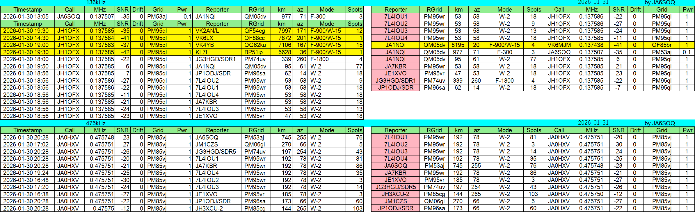 2026年01月30日JST//WSPR他集計です。