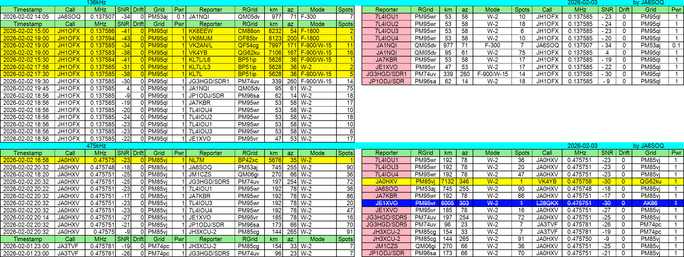 2026年02月03日JST//WSPR他集計です。